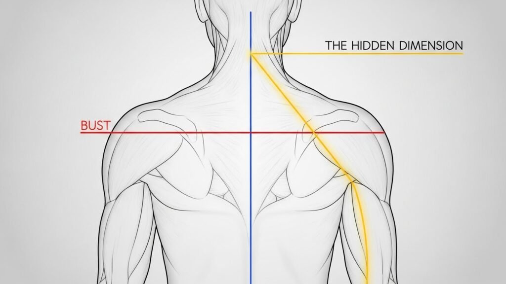 The Hidden Dimension rule allows you to bypass these averages. It forces you to measure the Diagonal Cross-Back Volume. This is the measurement from the base of your neck, across the shoulder blade, to the opposite armpit. It accounts for the “meat” of your back—the part that actually moves when you reach for a cup of coffee.