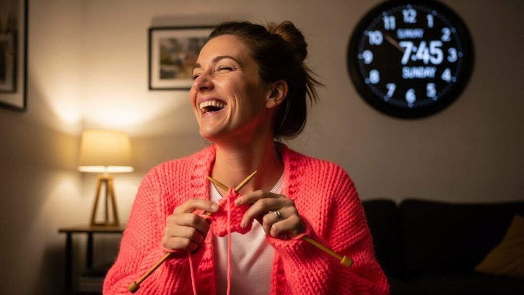Saturday (The Heavy Lifting – 6 Hours): Morning coffee brings the front panels. Afternoon tea sees the start of the sleeves. Because the stitches are large, you can clearly see the anatomy of your garment. Mistakes are caught instantly because they are the size of a thumb, not a grain of rice.