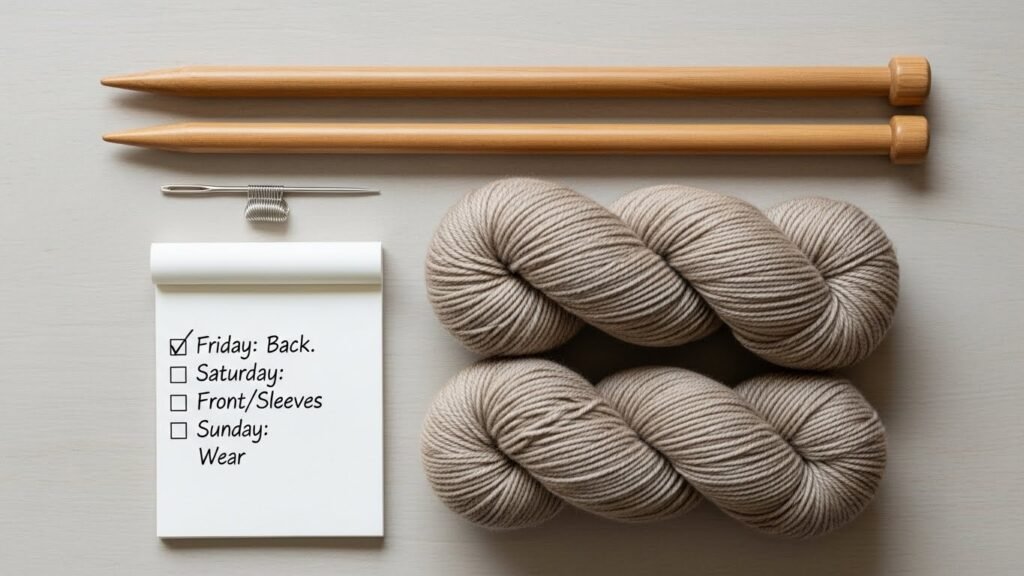 Sunday (The Victory Lap – 3 Hours): Seaming a bulky garment takes minutes, not hours. You aren’t hunting for microscopic loops; you are joining bold, clear stitches. By Sunday dinner, the ends are woven in, the garment is blocked (a quick steam will do for these fibers), and you are ready for Monday morning.